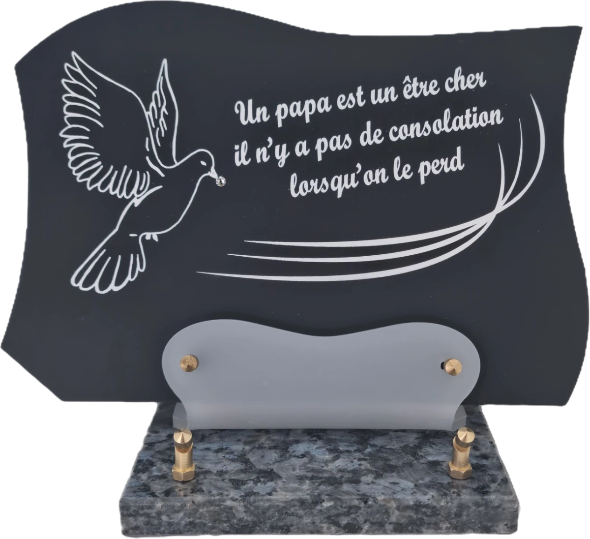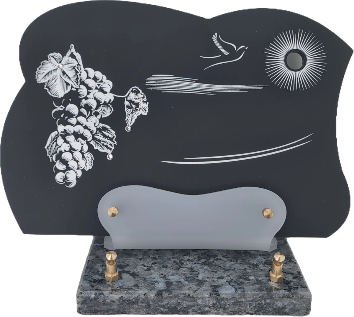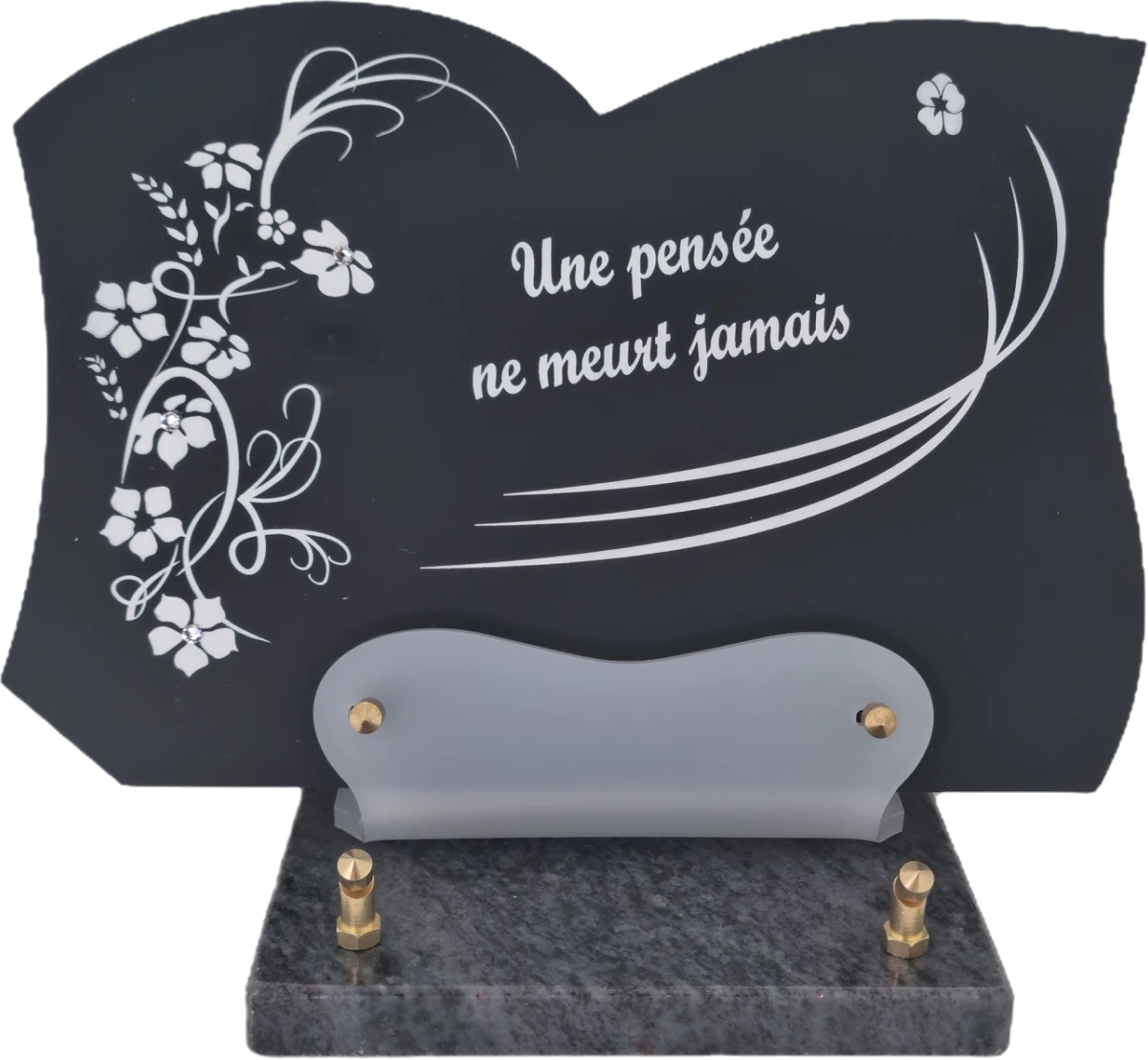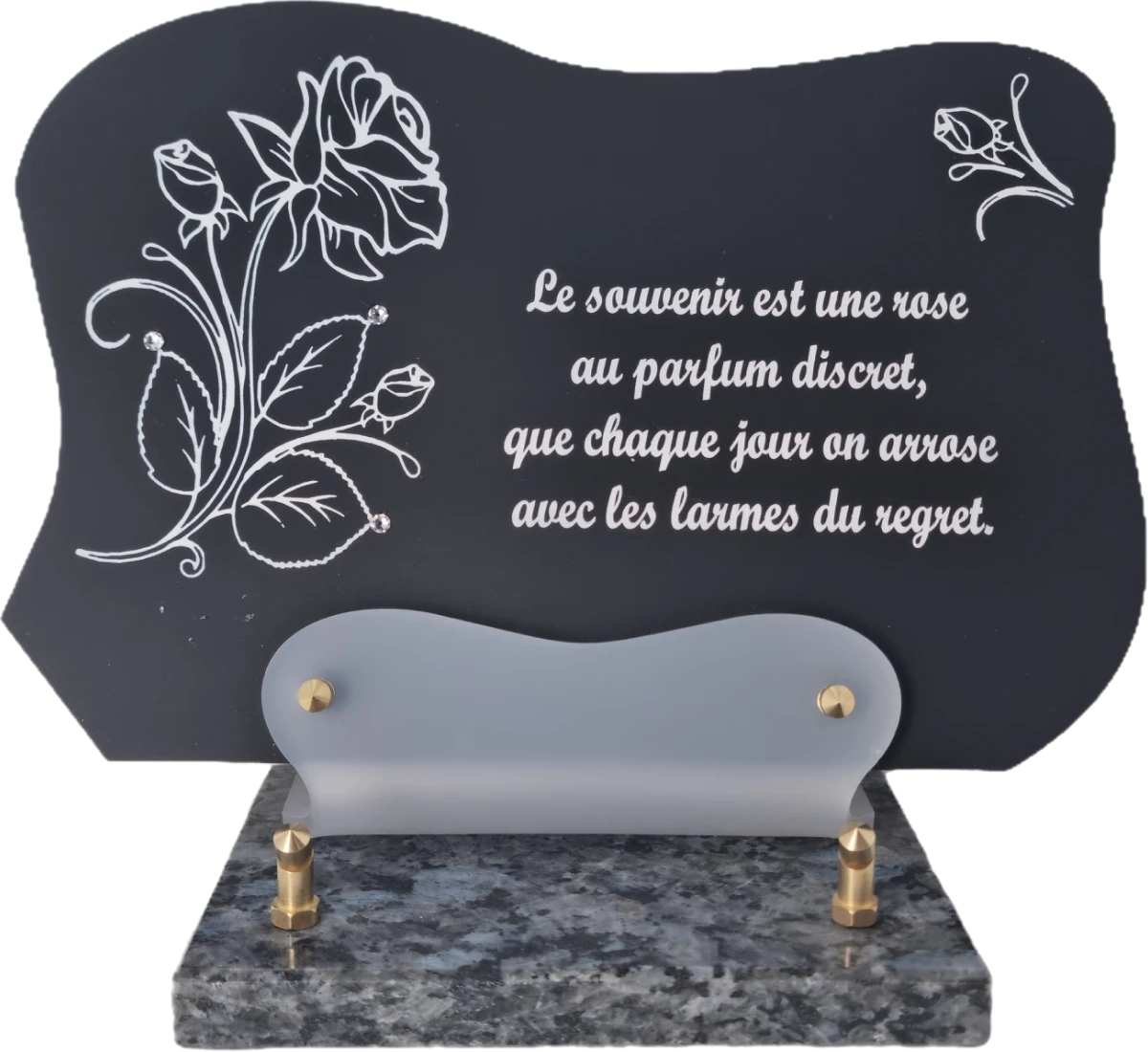 Altuglass Satin Black sur socle granit Plaque en Altuglas sur socle granit représentant un village paisible sous un ciel étoilé, bordé par un arbre de vie.