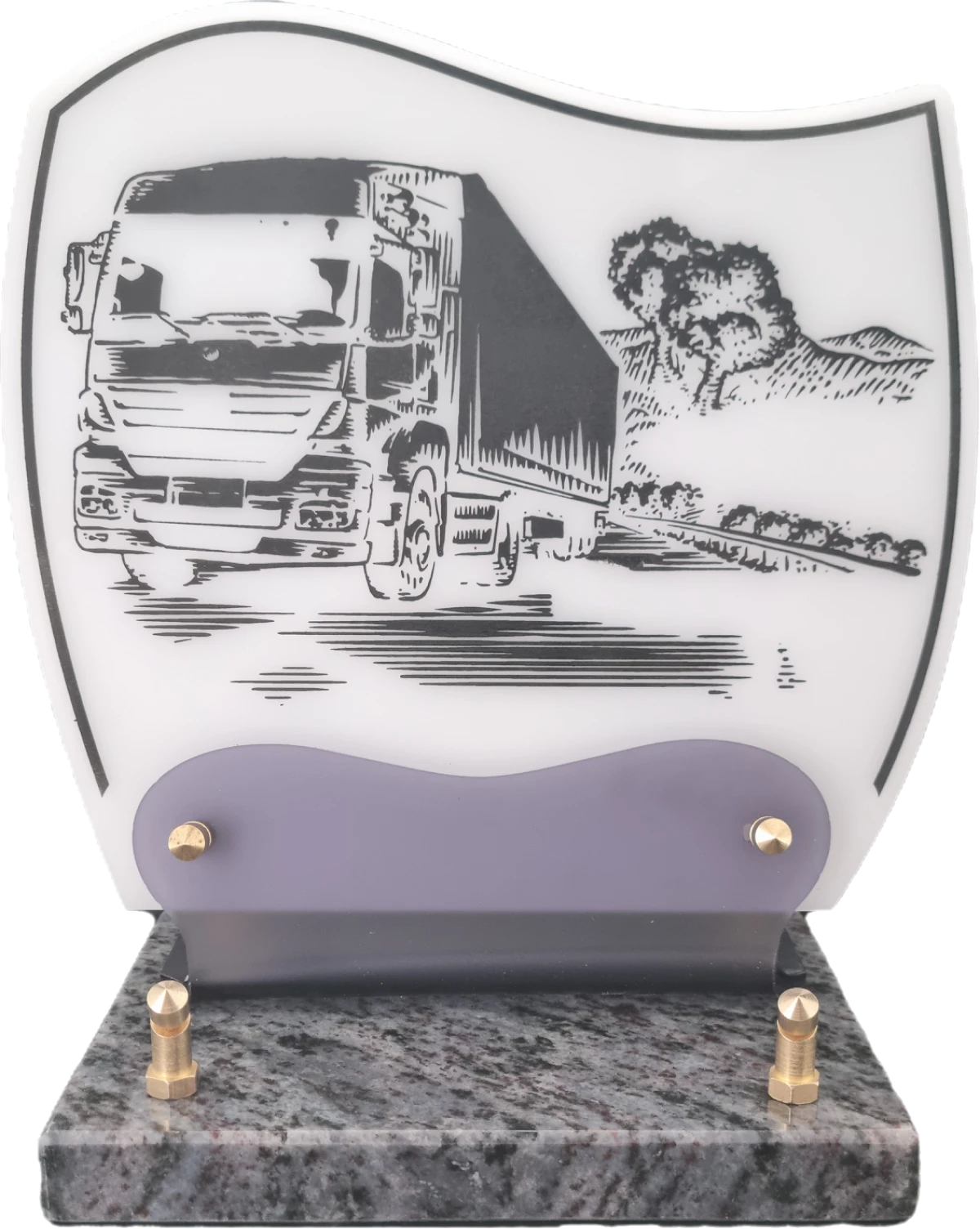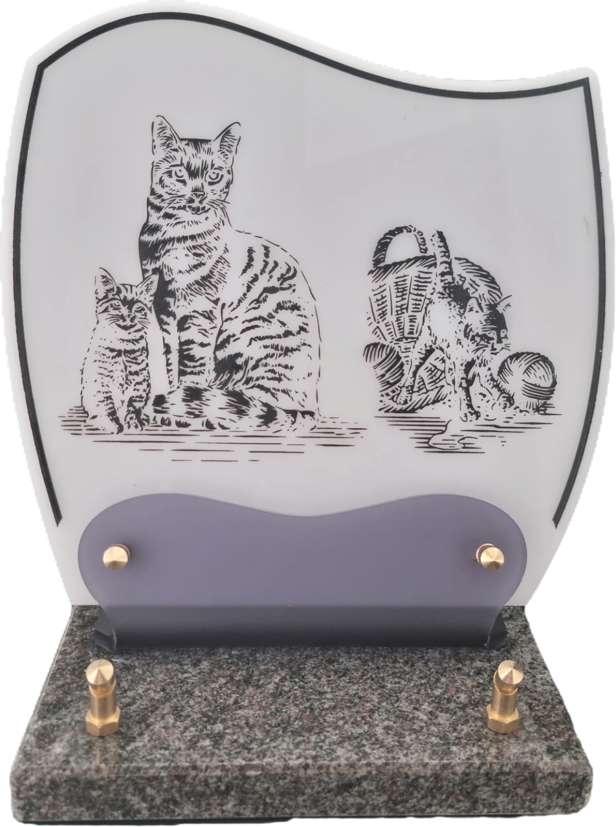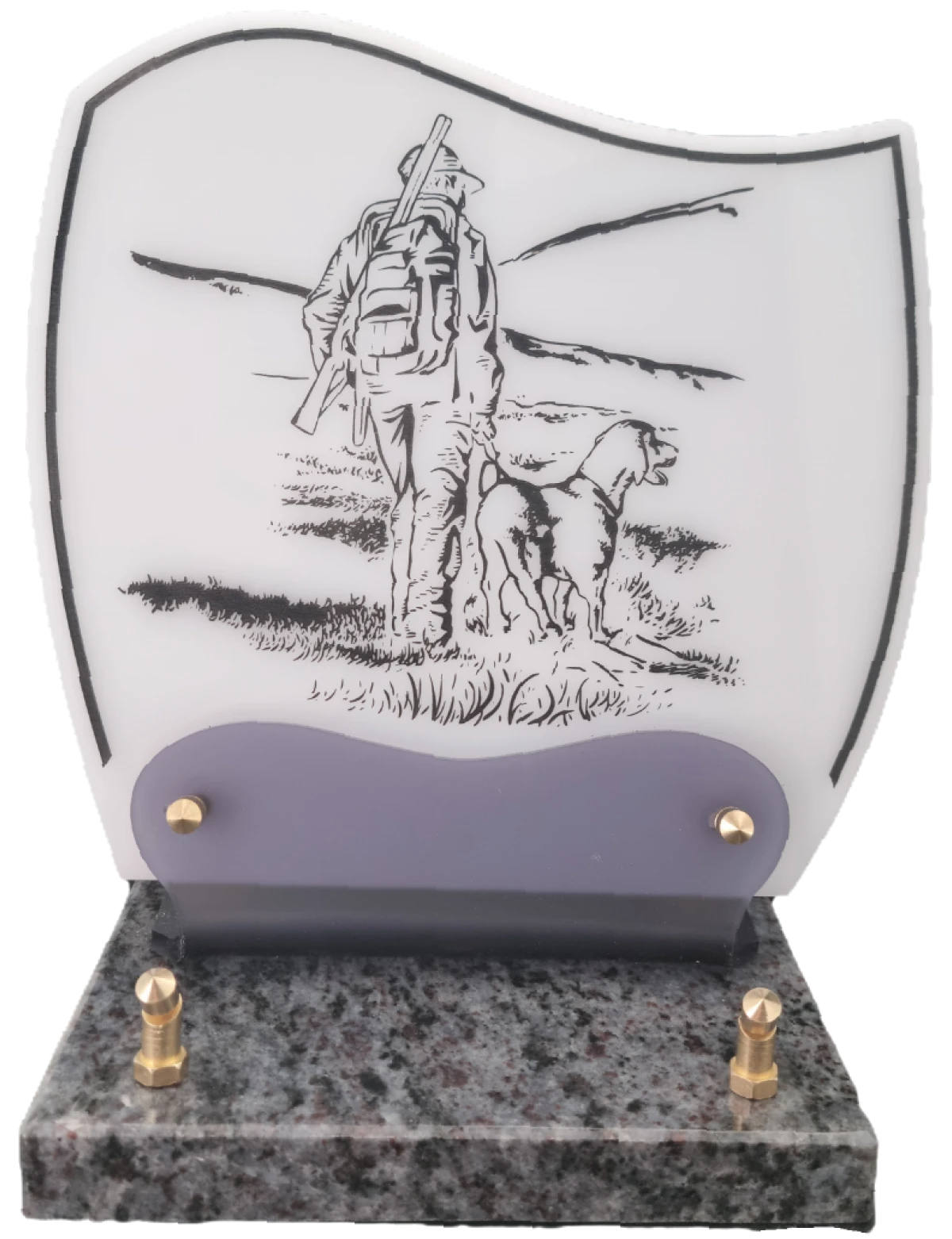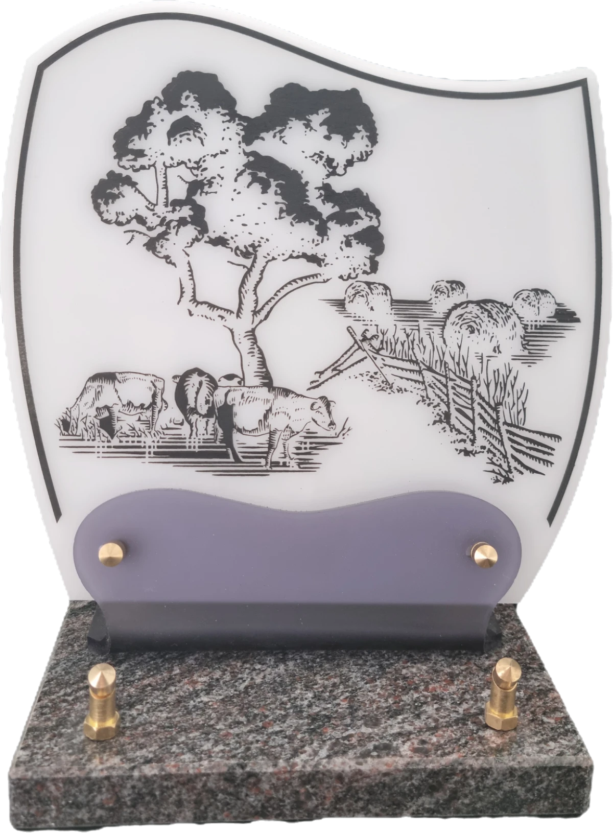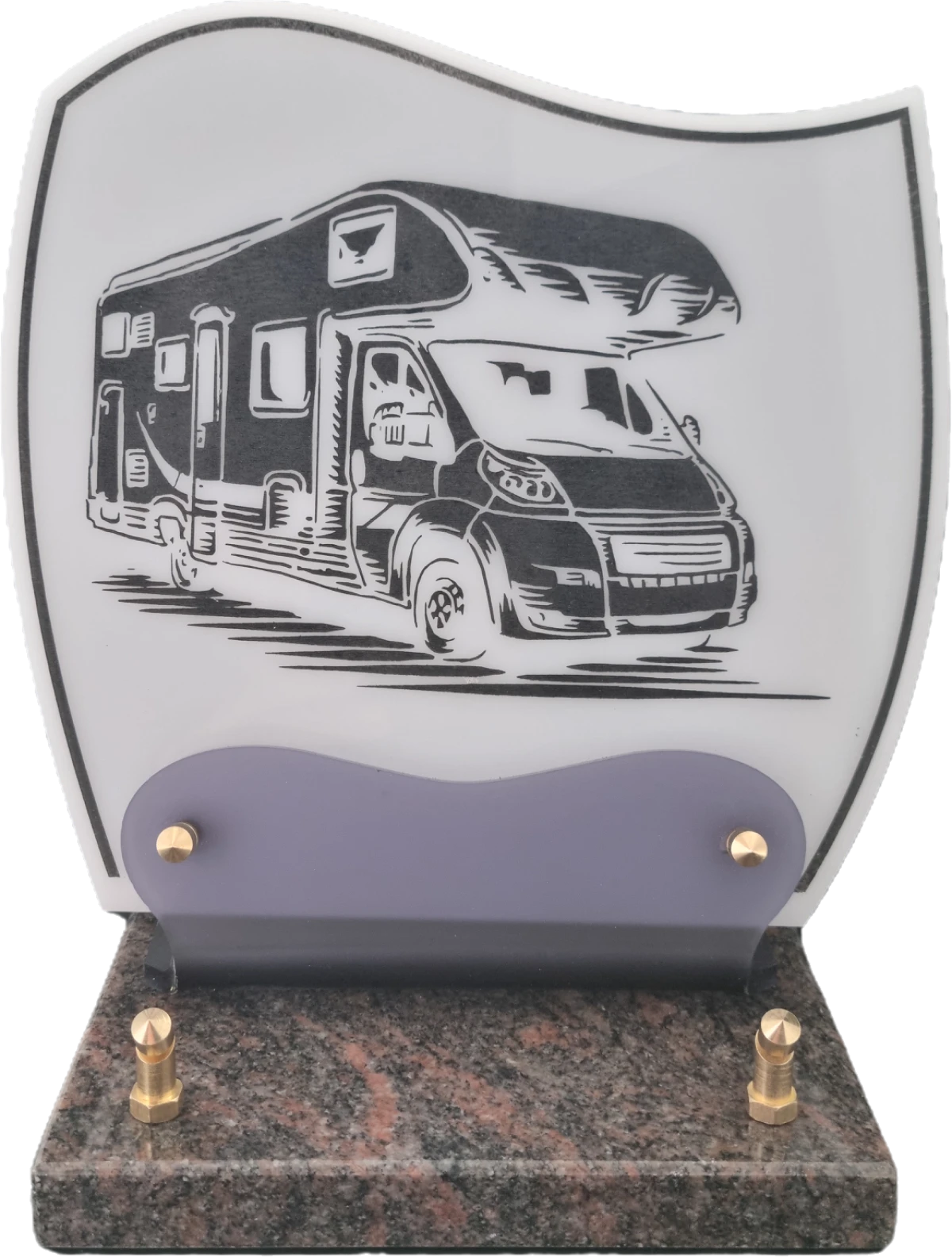 Doucine-Altu sur socle granit Plaque Altuglass sur socle en granit fixée par vis laiton, de couleur blanc ornée d’un décor gravé de portée musicale et de notes évanescentes. Idéale pour un passionné de musique.